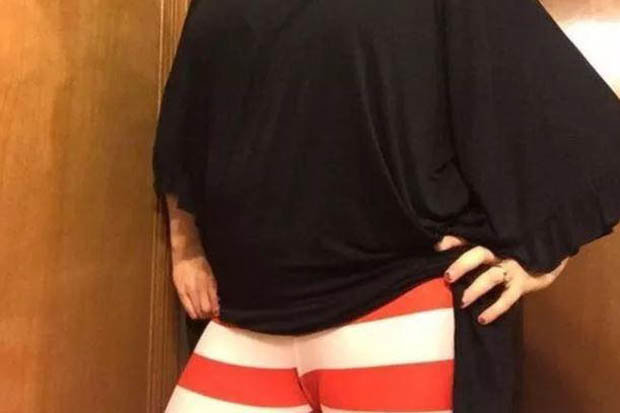 Неожиданный принт на леггинсах, похожих на часть костюма Санта Клауса, позабавили Сеть Фото женщины в штанах стало популярным среди пользователей.