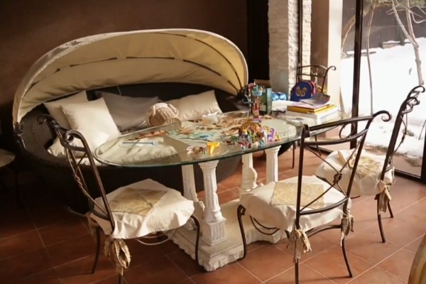 «Здесь мы живем около пяти лет. Когда заходишь сюда, видишь огромное пространство, высокие потолки, большая люстра, которая меня изначально пугала. Иногда, когда мы садимся разговаривать, я ребенка сдвигаю на другое место», — рассказала исполнительница.
