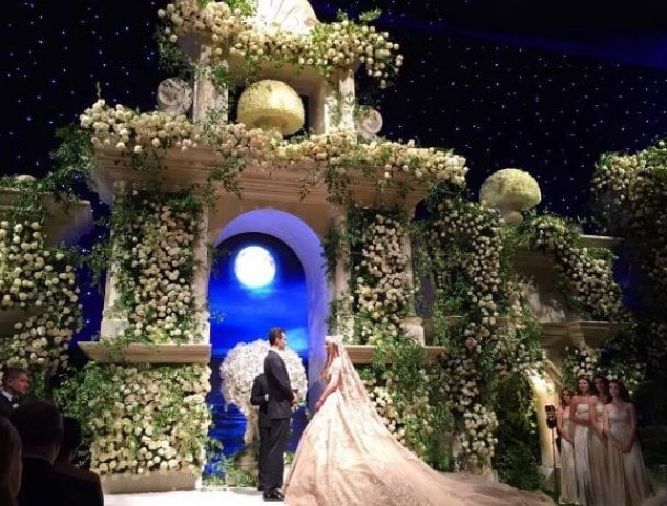 Церемония бракосочетания состоялась в здании кинотеатра Dolby Theatre, где проходит церемония вручения премии «Оскар». Столь пышный размах, с которым проводилась свадьба, поразил американскую прессу.