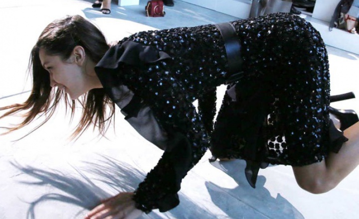 Супермадель распласталась на подиуме прямо у ног журналистов и изумленных гостей. Никто из зрителей даже и не подумал помочь красавице, зато все увлеченно защелкали своими смартфонами, снимая происходящее.