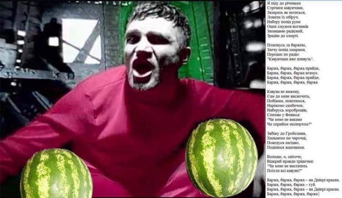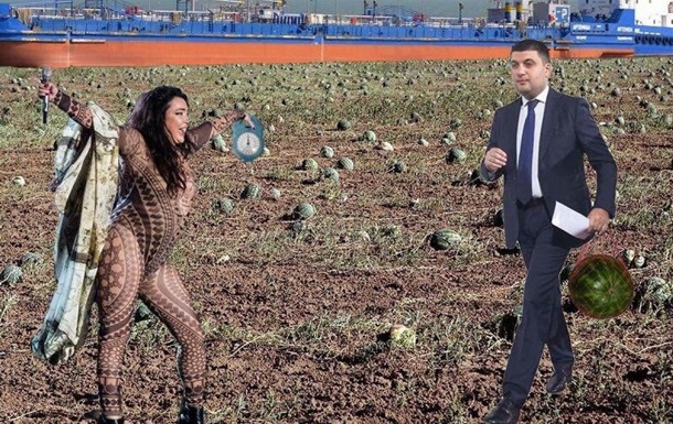 Знаменитая баржа, которая доставила в Киев т. н. «арбузы Гройсмана», за очень короткое время стала мемом в интернете. Приблизительно в 10:45 она прибыла в Переяслав-Хмельницкий. Там её разгрузили и оставшийся отрезок пути арбузы проделали на грузовиках.