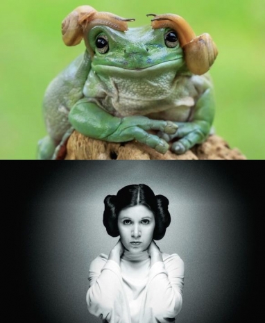 В сети набирает популярности снимок лягушки, на которую симметрично взбираются две улитки. Таким образом, своим силуэтом земноводное напомнило причёску принцессы Леи из первых частей франшизы «Звёздные войны».