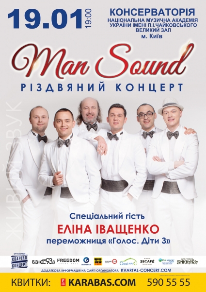 В четверг, 19 января 2017 года, в 19:00 украинская группа ManSound приглашает Вас в Колонный зал Национальной музыкальной академии Украины им. Чайковского города Киева на Рождественский концерт. Уже десять лет подряд эти выступления «вокального оркестра» становятся одним из самых ярких событий январских праздников и проходят с неизменными аншлагами.