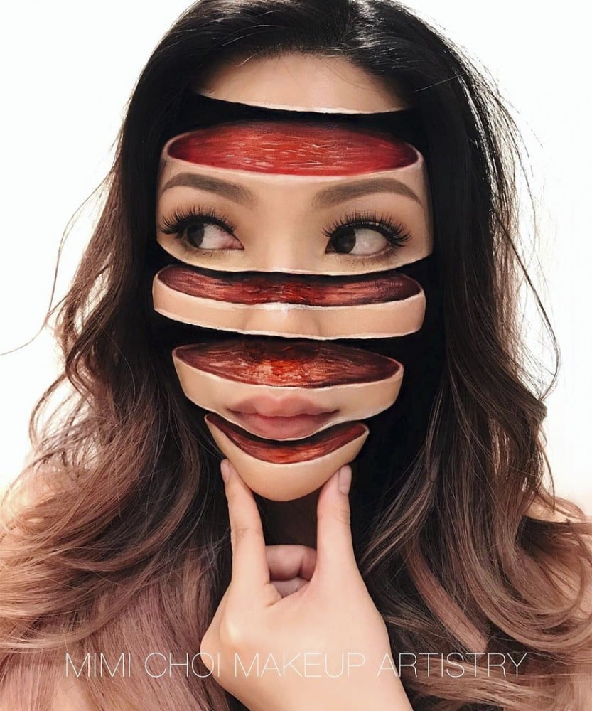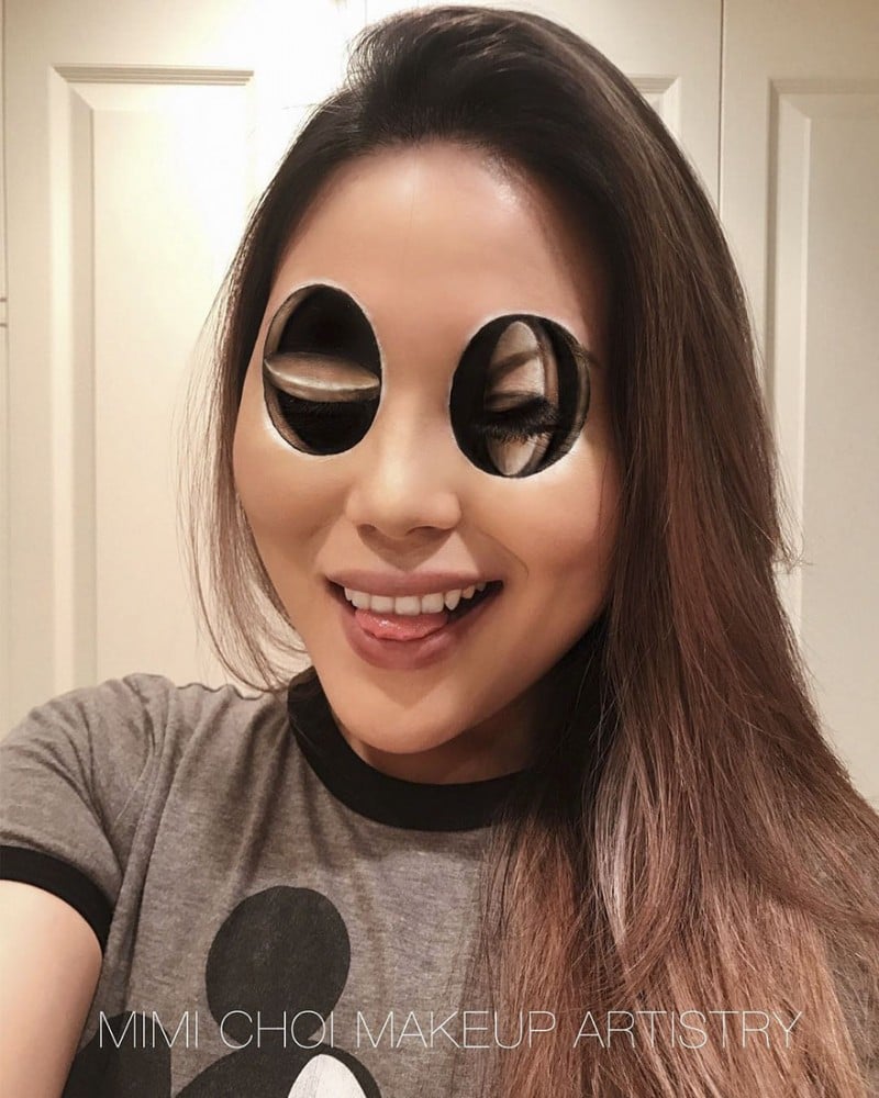 Мастер по макияжу из Ванкувера Мими Чои выкладывает в Instagram свои рисунки с оптическими иллюзиями на лицах. 31-летняя художница благодаря своему таланту собрала уже почти 300 тыс. подписчиков.
