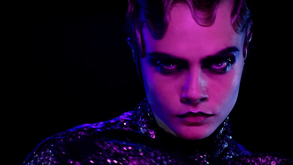 В абсолютно черной комнате в латексе, перьях и коже позируют Мэрилин Мэнсон, Мисси Эллиотт, Кортни Лав, Анни Кларк, Сьюзан Сарандон, Кара Делевинь и Дженезис Пи-Орридж, а сам маэстро Джейкобс пускает кольца дыма.
