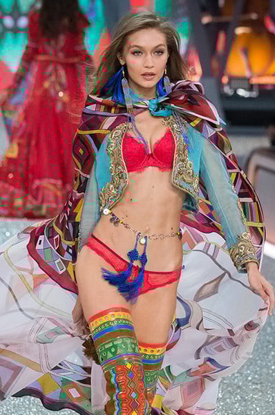 Дефиле устроили около 50 моделей под крышей Grand Palace. В показе участвовали супермодели Адриана Лима, Ирина Шейк, Алессандра Амбросио, Кендал Дженнер, Белла и Джиджи Хадид. Саундтрек для шоу обеспечили Бруно Марс и Леди Гага.