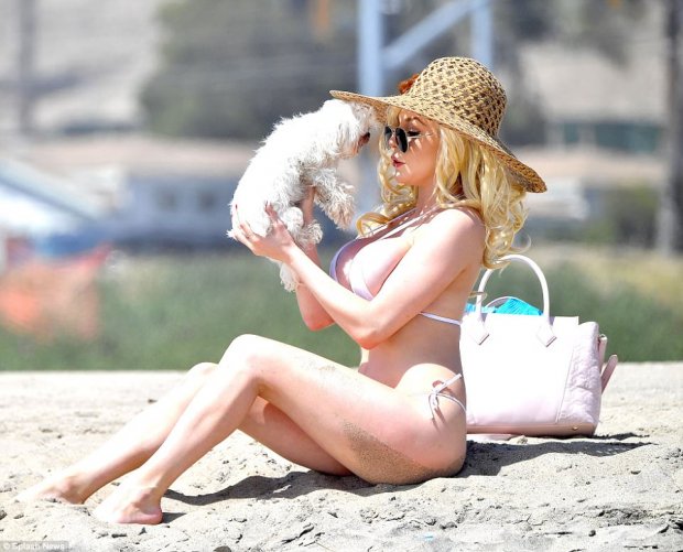 На этот раз она порадовала поклонников, показавшись в соломенной шляпе, крайне маленьком купальнике, очках и лёгком платочке. Кортни взяла с собой на пляж собачку, хотя выгуливать животных на нём запрещено.