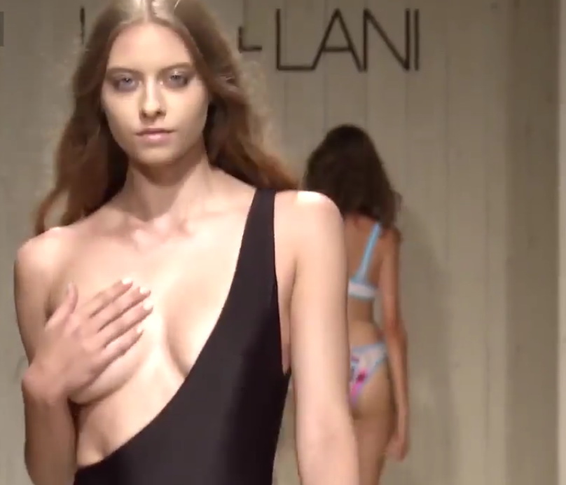 Во время показа купальников бренда Lee and Lani на Miami Swim Week одна из моделей вышла на подиум с одной голой грудью. Об этом сообщает The Daily Star.