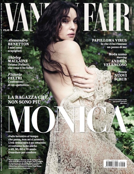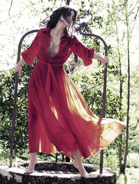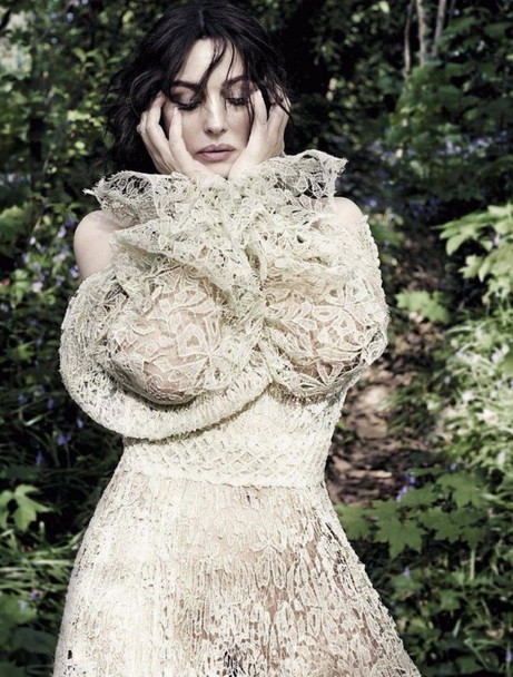 Беллуччи примерила прозрачные платья из новых коллекций культовых Домов моды, включая Lanvin, Valentino, Celine и Emilio Pucci, а также позировала итальянскому фотографу Джанлуке Фонтана обнаженной.