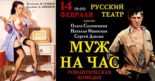 Впервые в Одессе! Ко Дню всех влюбленных! 14 февраля в 19-00 на сцене Русского театра романтическая комедия — «МУЖ НА ЧАС».