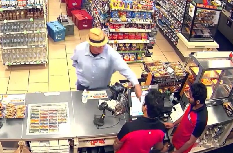 Неизвестный ограбил магазин, используя палец вместо пистолета. Благодаря своей харизме и умению запугивать, он смог убедить двух продавцов за прилавком, что за спиной у него настоящий пистолет и он вот-вот его достанет. Однако, как видно с камеры наблюдения, за спиной у него была лишь пустая рука.