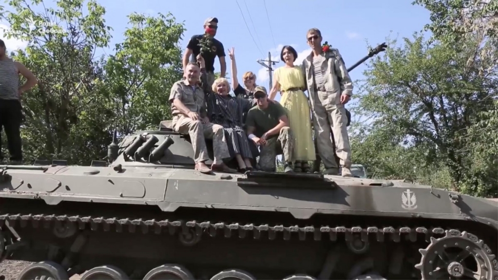 Как сообщает «Радио Свобода«, вместе с коллегами она пообщалась с военными и сыграла небольшой спектакль.