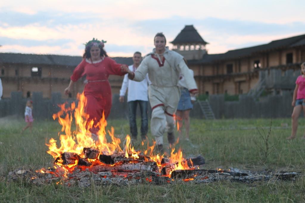 Вечерняя программа будет зажигательной, в прямом смысле слова. С наступлением сумерек в Древнем Киеве зажгут костры. Говорят, что купальский огонь очищает от невзгод и болезней. Поэтому стоит воспользоваться возможностью сжечь негатив и обновиться, прыгнув через костер – по одному или в паре, при желании выйти замуж или найти любовь. Кульминацией огненной феерии станет сжигание чучела Купалы. С этой большой соломенной куклой сгорят все неурядицы, а веселые хороводы вокруг костра подарят небывалый заряд позитива.