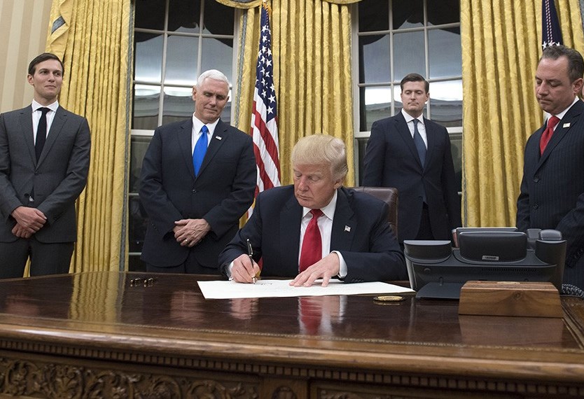 По итогам первых ста дней президентского срока Дональда Трампа был выпущен текст, в котором описывалась его деятельность. Между делом в статье рассказывается о красной кнопке, которую установили на рабочем столе президента.