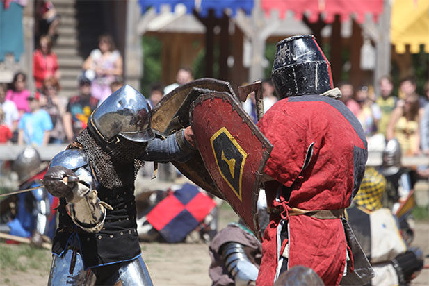 Актеры-каскадеры конно-трюкового театра Древнего Киева покажут мастерство владения различными видами оружия, которые использовалась в Средние века: мечами, копьями, сулицами. А также всадники и их верные четвероногие друзья продемонстрируют элементы боевой джигитовки: различные трюки, которые сейчас используются в показательных выступлениях, а в прошлом помогали в атаке или спасали жизни в бою.
