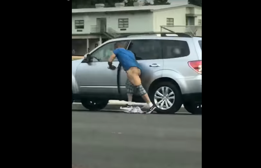 Мужчина в американском городе Кент (штат Вашингтон) попытался угнать автомобиль. Но когда он схватился за ручку двери, то сидевший за рулём водитель надавил на газ. Оттого злоумышленник-неудачник вытер своими штанами всю улицу. В определённый момент штаны слетели с мужчины и его протащили уже на голой попе, которая испачкалась в грязи.
