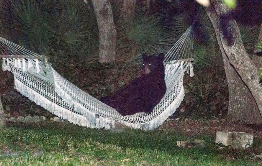 Американка Мишель Бабер из Северной Каролины была удивлена, когда застала в своем гамаке бурого медведя. Животное мирно качалось и наслаждалось отдыхом. Примечательно, что за этим занятие она видит косолапого не первый раз.
