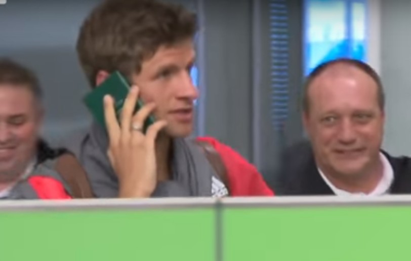 Бомбардир сборной Германии по футболу, выступающий на той же позиции в «Баварии», Томас Мюллер дабы избежать общения с журналистами сделал вид, что говорит по мобильному телефону. Вот только мобильного у него под рукой не оказалось, так что он, как ни в чём не бывало, приложил к уху паспорт.