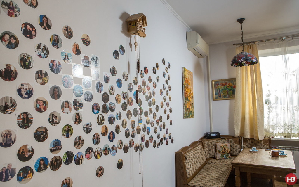 Одна из стен на кухне посвящена памятным встречам Анны Гопко. На снимках она позирует вместе со знаменитостями, политиками и представителями духовенства. Эти фото коллеги подарили ей на недавний день рождения.