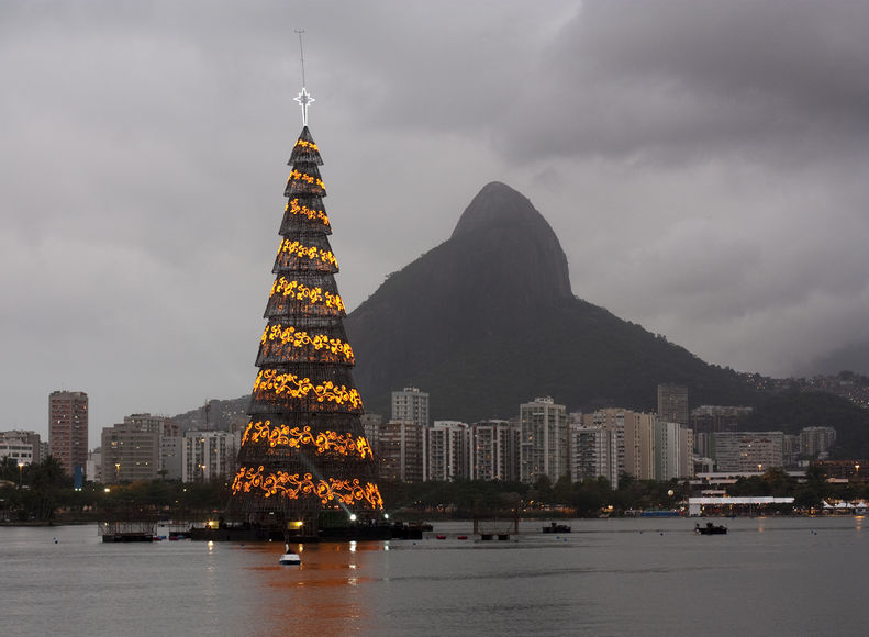 При этом самой высоким праздничным деревом вот уже который год остается плавучая ель в Рио-де-Жанейро. Высота ее составляет порядка 85 метров, поэтому дерево можно без труда заметить с любой набережной города.