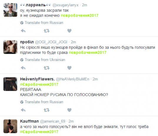 «А мне понравилось! Я сейчас буду на стороне Руслана, поскольку я еще тот певец. Вы большой молодец. Я не считаю, что Руслан так уж мечтает поехать на «Евровидение», а скорее воспринимает это как приключение. Желаю тебе удачи», — заявил музыкант.