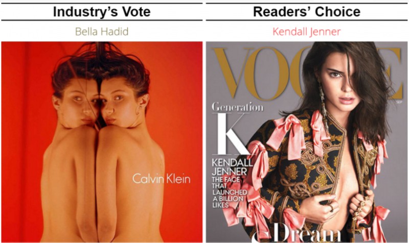 Престижное модное издание Models.com провело опрос среди экспертов и широкой публики. На основании их голосов были определены лучшие модели года. По мнению представителей модной индустрии, лучшей моделью года стала Белла Хадид: