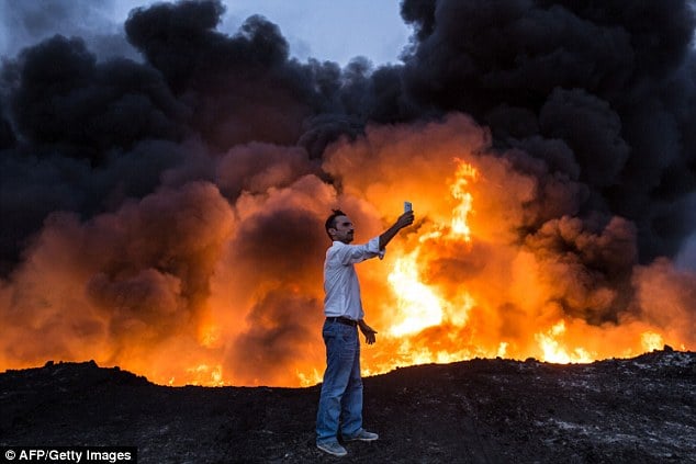Издание Daily Mail опубликовало подборку самых странных селфи, которые появлялись за последние годы в социальных сетях и прессе. Некоторые из улыбчивых снимков сделаны на похоронах или в туалете. Другие – в экстремальных ситуациях: за мгновение, как фотографа накрывало волной или его задерживала полиция.