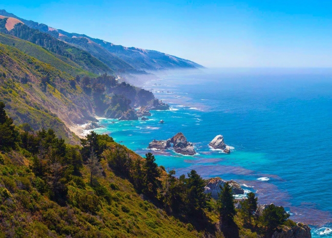 Обилие минералов на береговой линии Биг-Сур (Калифорния) придаёт пеку фиолетовый оттенок.