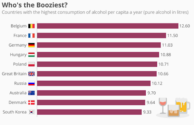 Россия заняла почетное седьмое место, традиционно оказавшись в списке самых пьющих стран мира.