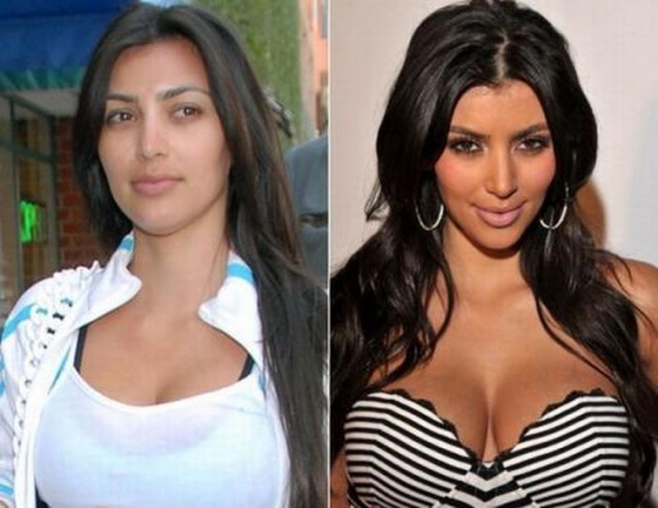 Звезда реалити-шоу любит выставлять свою личную жизнь напоказ, но только не свое лицо. Увидеть Ким без «боевого раскраса» практически нереально, но папарацци под силу любая задача. Как можно заметить, без макияжа лицо девушки выглядит довольно невзрачно.