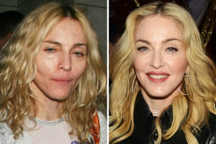Как бы не молодилась Мадонна, без косметики она выглядит очень старо. В этом году ей исполнилось 58. Скрыть недостатки старения кожи диве помогает естественный макияж.