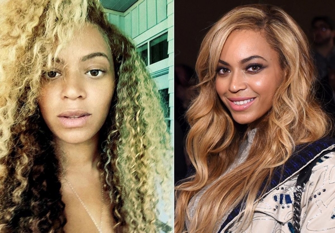 Певица выглядит блекло без яркого макияжа, а кучерявую копну волос сложно назвать прической. Поддерживать статус одной из самых сексуальных знаменитостей Бейонсе помогает выразительный мейк и лак для волос.