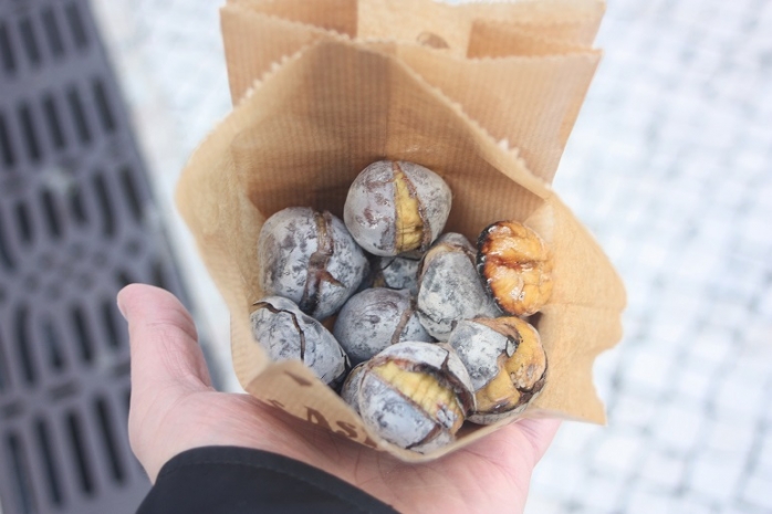 Аппетитные жареные каштаны пользуются успехом у кинолюбителей Франции. К слову, у французов есть целый праздник посвященный каштанам. Так что не странно, что жареные каштаны у них столь популярное лакомство.
