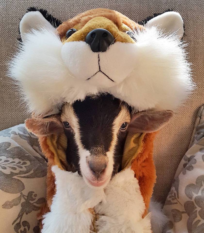 На удивление, как только козу облачили в костюм, Полли мгновенно успокоилась. Теперь каждый раз, как только Линн замечает, что ее подопечная излишне нервная, она достает из шкафа наряд и надевает его на животное. Теперь в гардеробе козочки имеется немало костюмов животных, но утка остается ее любимым одеянием.