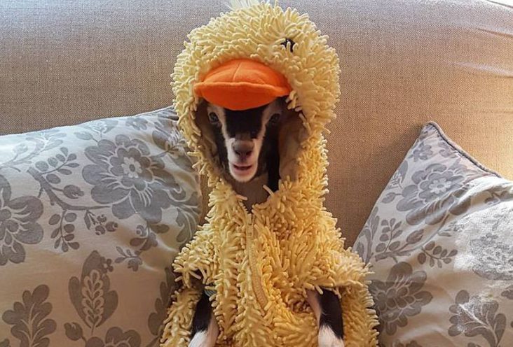 Полли – необычная коза. Это беспокойное животное обожает переодеваться в костюм утки, сообщает Metro.co.