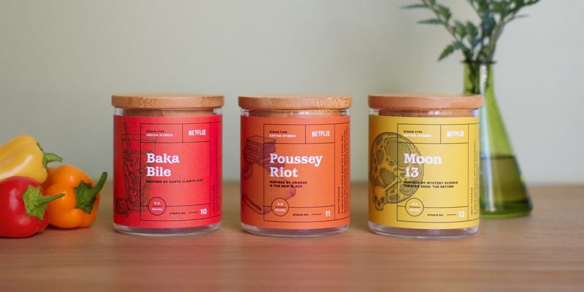 Стриминговый видеосервис Netflix запустил продажу разных сортов марихуаны, которые названы в честь популярных сериалов, сообщает Dazed. В Калифорнии, где употребление марихуаны разрешено законом, каннабис продается в фирменных банках ограниченной серией. Среди названий сортов встречаются отсылки к ситкомам «Диета из Санта-Клариты», «Конь Боджек», «Замедленное развитие» и другим. Кроме того, одна из баночек имеет название Poussey Riot, что отсылает потребителя одновременно и к сериалу «Оранжевый — новый черный», где одну из героинь зовут Пуссе, и к российской арт-панк-группе Pussy Riot.