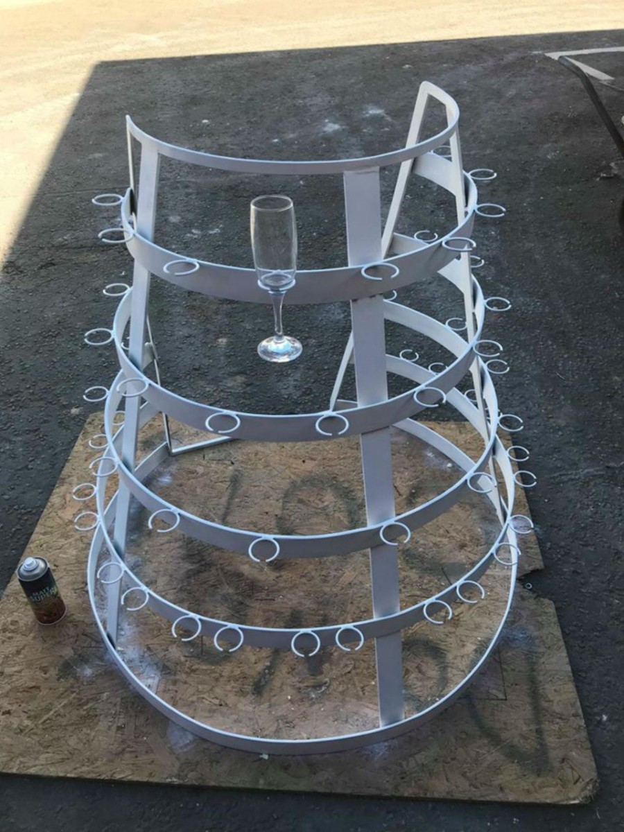 38-летняя Келли заказала изготовить ей металлическую рамку в 4 ряда с возможностью крепить на ней бокалы. Конструкция весила 30 кг, но женщину это не смутило. Теперь она сдает в аренду свой оригинальный наряд за $129 в день и уверена, что он пригодиться другим счастливым невестам.