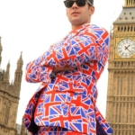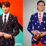 Пиджаки, брюки и галстуки пестрят яркими геометрическими изображениями, усами, значками долларов цветами, флагами Великобритании и США, картинками из японской видеоигры «Pac-Man», популярной в 80-х.