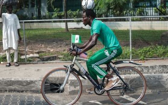 Футболист из Нигерии Харрисон Чинеду проехал 103 километра на велосипеде, удерживая на голове мяч.