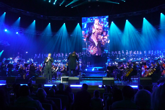 Вчера на главной сцене дворца «Украина» показали известный французский мюзикл Notre dame Paris. Правда, на этот раз в нем играли украинские артисты, исполнявшие партии на французском языке. Среди них – Арсен Мирзоян (Квазимодо), Ольга Жмурина (Эсмеральда), Михаил Димов, Аркадий Войтюк, Антон Копытин, Виктория Васалати и другие. Вместе с артистами на сцене было около 150 музыкантов – хор, оркестр. К слову сказать, дирижером был правнук известного украинского композитора Николая Лысенко. По словам организаторов, наряды для женских ролей шили в США на протяжении трех месяцев, одно из них обошлось в 15 тысяч долларов и весило около 30 кг, а другое – стоимостью около 5 тысяч долларов.
