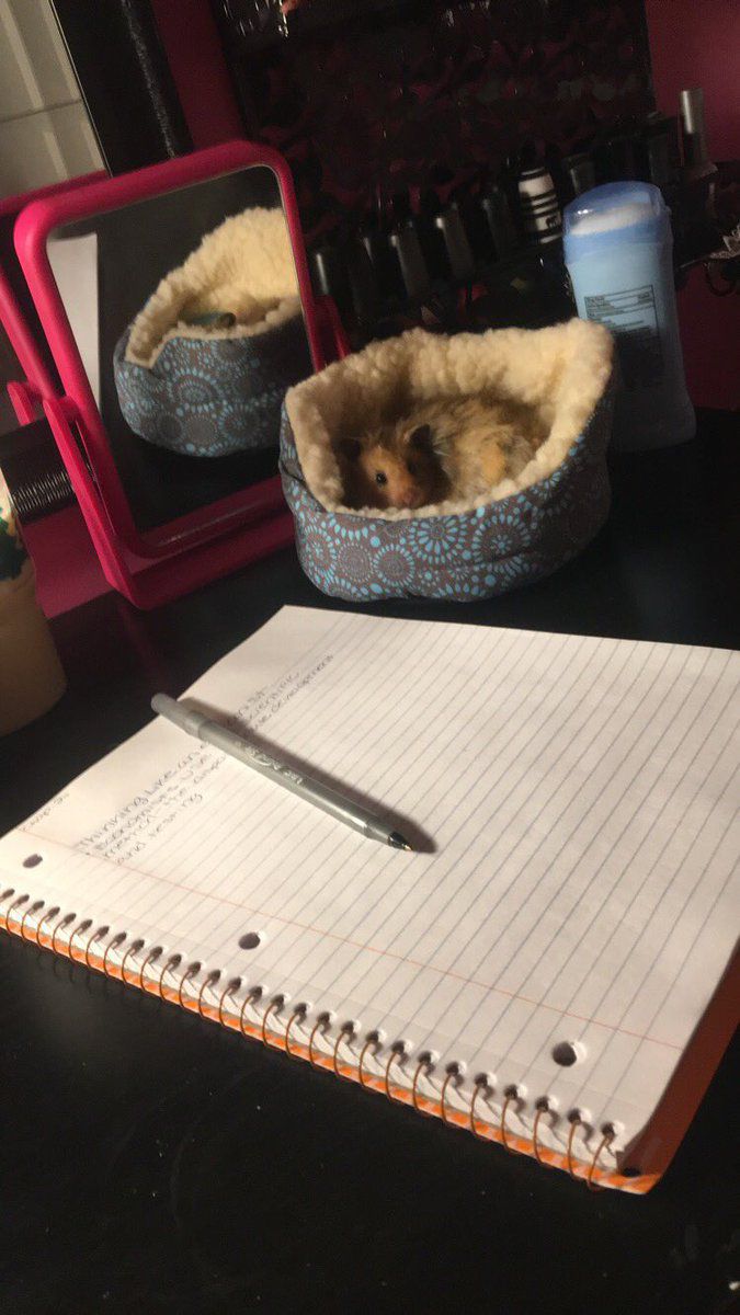 i bought my hamster a lil bed and now we do everything together pic.twitter.com/V7EJPWdAQj