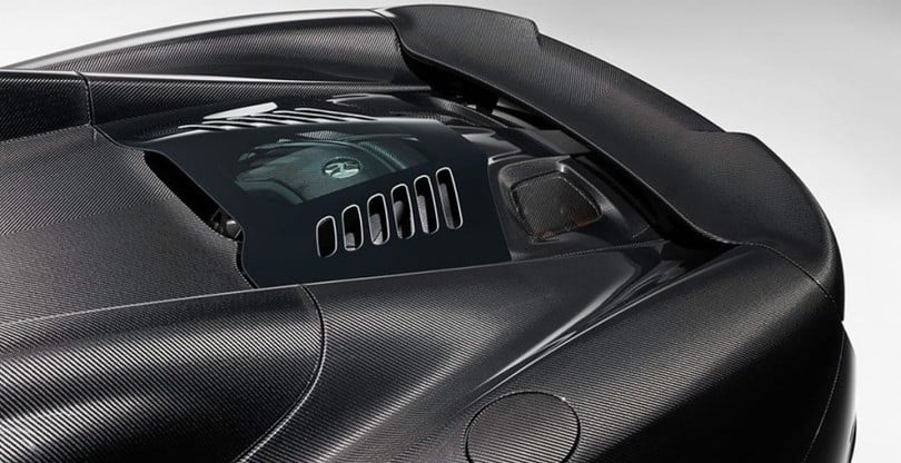 При изготовлении кузова этого спортивного автомобиля использовалось на 40% больше углеродного волокна, чем обычно. Полностью из карбона изготовлены такие элементы автомобиля, как капот, задняя часть кузова, складывающаяся крыша, передние стойки и двери-крылья.