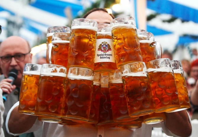 Немецкий официант Оливер Штрумпфель сумел поднять 31 литровую кружку с пивом и пронести их 40 метров. Их общий вес составил около 70 кг. Однако судьи не засчитали ему две кружки, так как одна из них разбилась, а из другой выплеснулось пиво.
