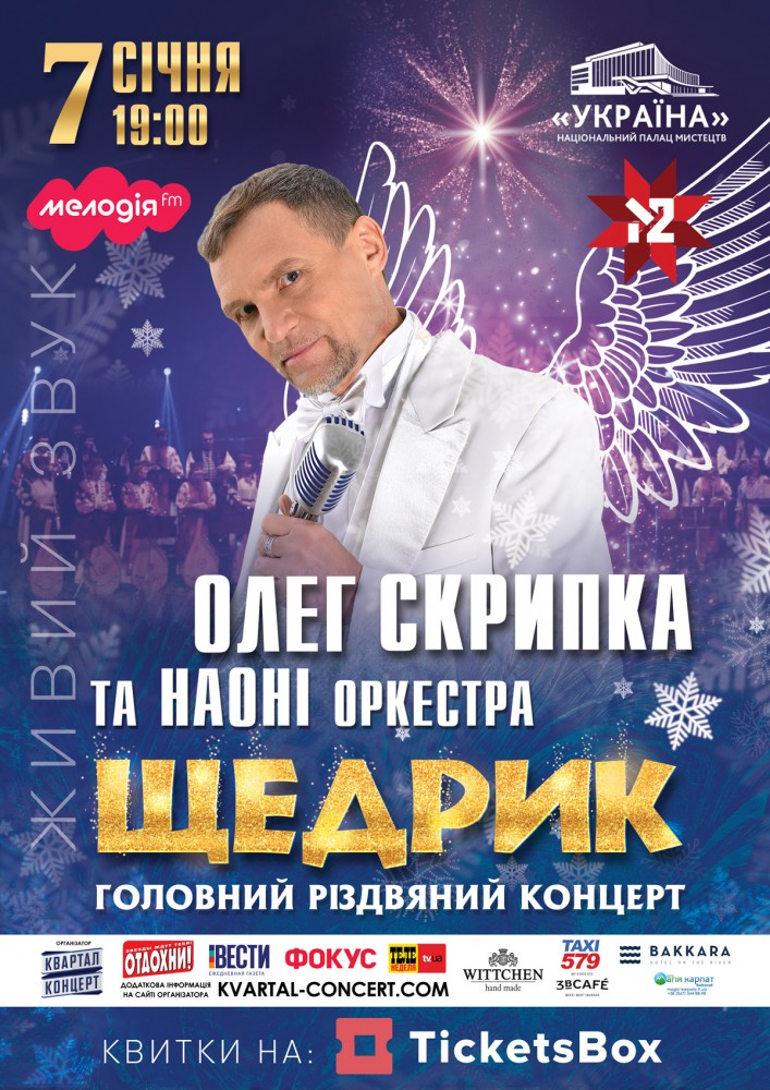 Олег Скрипка и Национальный академический оркестр народных инструментов (НАОНИ) радушно приглашают вместе отпраздновать самый уютный и волшебный праздник года! Вечер 7 января 2019 года в Национальном дворце искусств “Украина” станет “Главным Рождественским вечером” — именно таким будет праздничный концерт одной из лучших творческих коллабораций нашей страны. Для Олега Скрипки Рождество является праздником, который он не берётся сравнивать ни с одной другим: