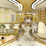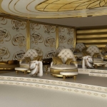 Её интерьеры и дизайн разработан специально под женский вкус. Мебель выполнена в пастельных тонах. Полы покрыты мягкими коврами и шкурами. Потолки в стены в большинстве залов здесь украшены кристаллами Сваровски. Также романтические интерьеры включают многочисленные зеркала, а на окнах висят пышные шторы. Дизайн для яхты, большинство кают которой напоминают будуар, разрабатывала Лидия Берсани.