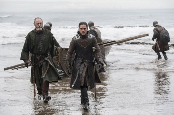 Из них становится ясно, что Джон Сноу высаживается на берегу в Драконьем камне вместе с Давосом Сивортом. Кроме того на одной из скал Мелисандра встретится с Варисом, где они будут что-то обсуждать. Также кадры показывают Дейенерис Таргариен, Тириона Ланнистера, Сансу Старк и других ключевых героев сериала.
