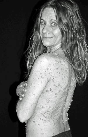 Жительница штата Индиана (США) Либби Хаффер страдает от редкой формы нейрофиброматоза. В результате заболевания её тело покрылось более чем шестью тысячами бородавок.