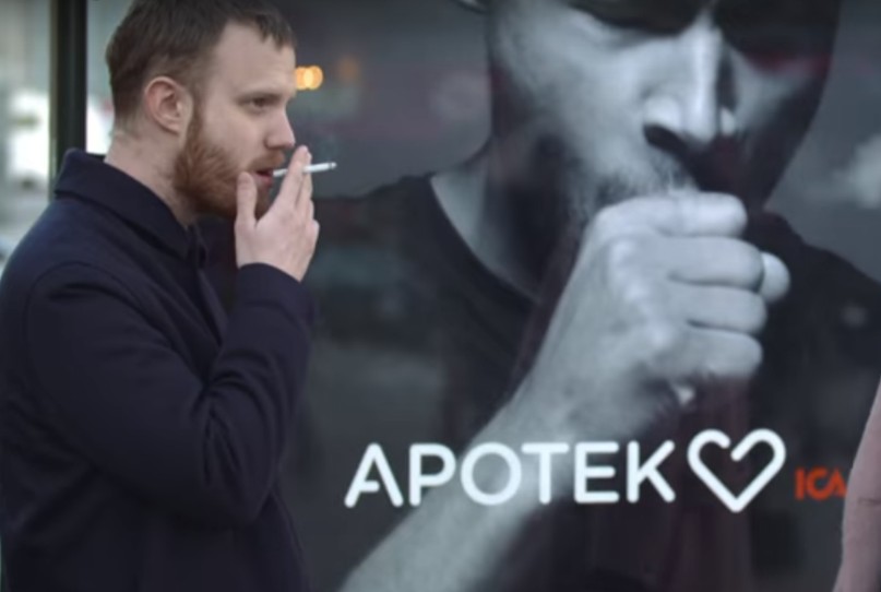 Фармацевтическая компания, которая выпустила препараты, помогающие бросить курить, а также восстановить организм после курения, выпустила оригинальный билборд. На нём изображён парень, который начинает кашлять, если рядом с ним кто-то курит.