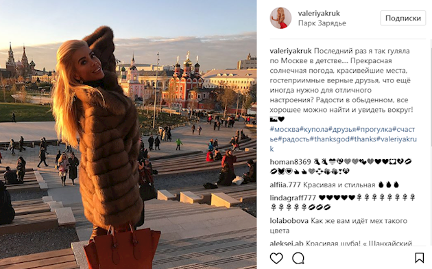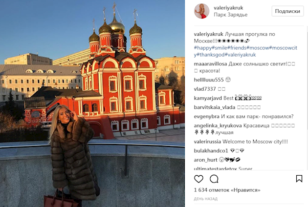 «Последний раз я так гуляла по Москве в детстве… Прекрасная солнечная погода, красивейшие места, гостеприимные верные друзья, что ещё иногда нужно для отличного настроения? Радости в обыденном, все хорошее можно найти и увидеть вокруг!» — написала Валерия.