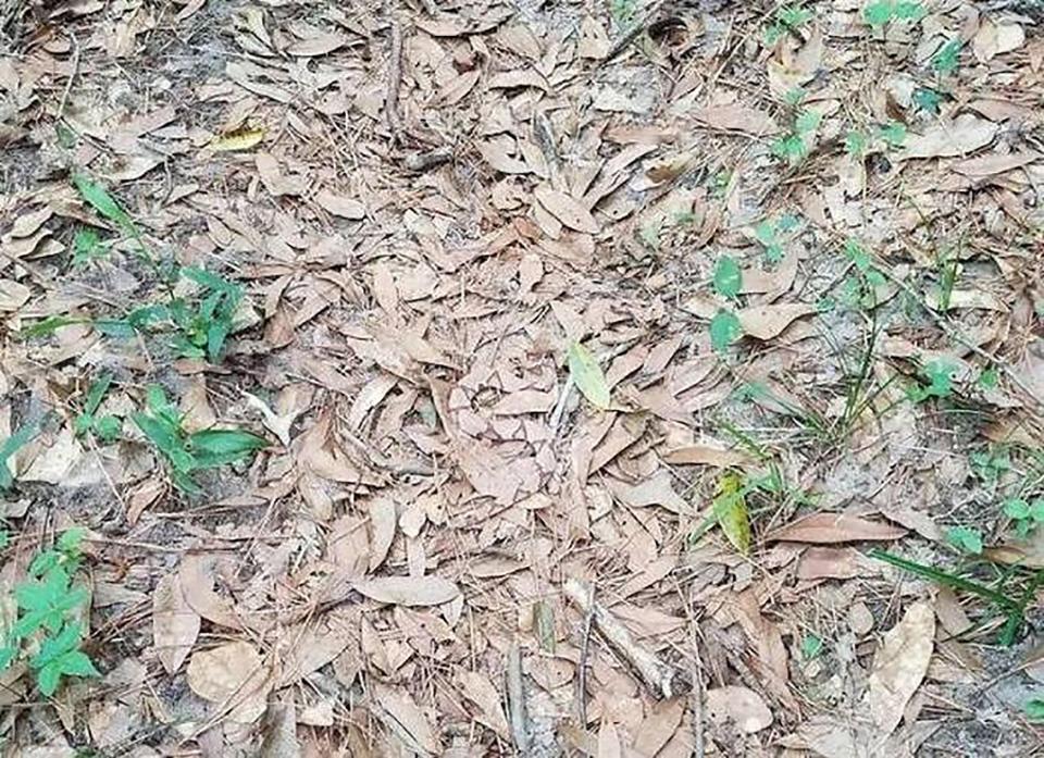 На фото рептилия замаскировалась так хорошо. что вычислить ее с первого раза непросто.